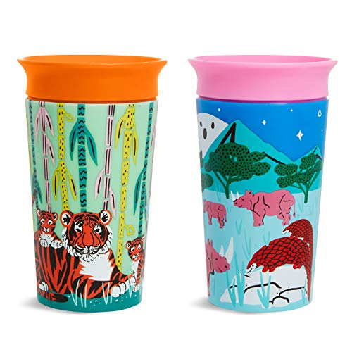 Munchkin Miracle 360 WildLove - Tasse Apprentissage Antifuites pour Bébé et Nourrisson, Sans BPA, Compatible Lave-Vaisselle, Emballage Recyclé - 266 ml, Lot de 2, Rhinocéros/Tigre