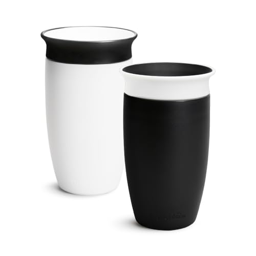 Munchkin Tasses Miracle 360 Bébé |Gobelet à Flux Libre pour Tout-Petits |Tasse d'Apprentissage |Sans BPA |Sans Déversement |Bouteille d'Eau Bébé |À partir de 12m+|296 ml |Pack de 2 |Noir/Blanc