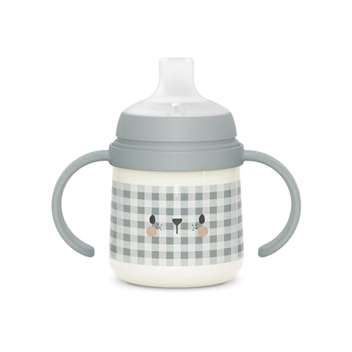 Suavinex, Tasse Apprentissage avec Bec Rigide Anti-Râpage, Tasse Bébé Anti - Fuite, Gobelet Enfant avec Couvercle Rabattable et Poignées, Passe au Lave-Vaisselle. +6 Mois, 200 ml. Bears, Vert