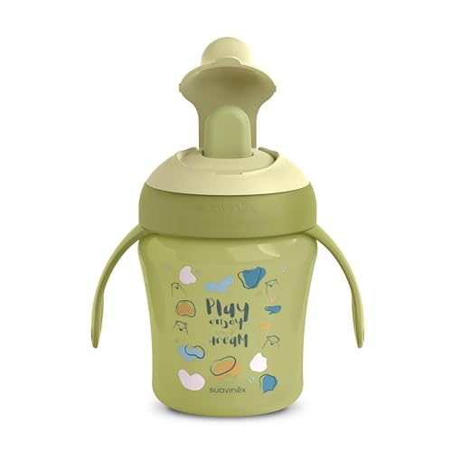 Suavinex, Tasse d'Apprentissage Bébé 3 en 1: Gobelet avec Bec + Paille + Tasse, Anti-Fuite, en Silicone, avec Poignées, Compatible Lave-Vaisselle et Micro-Ondes, Tasse pour Bébés +6 Mois, Vert