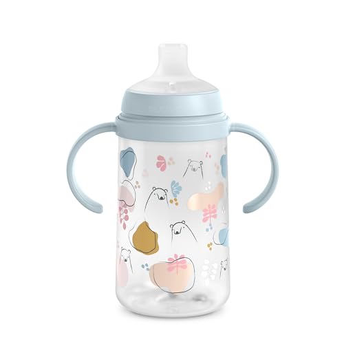 Suavinex, Biberon à Anses, Tasse Apprentissage Bébé avec Bec Souple en Silicone, Système Anti-Colique, Gourde Enfant avec Poignées, Antifuites, Passe au Lave-Vaisselle, +6 Mois, 270 ml, Bears Bleu