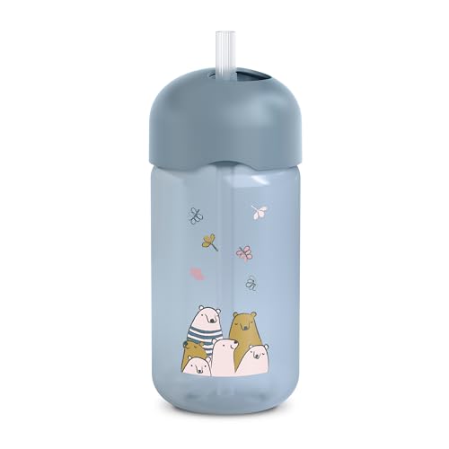 Suavinex, Tasse Apprentissage Bébé, Gourde Paille Enfant, Gobelet Bébé avec Paille en Silicone Flexible, Résiste à la Morsure, Anti-goutte, Apte Lave-vaisselle, +18 Mois, 340 ml, Bears Bleu