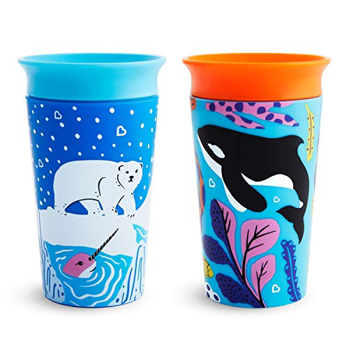 Munchkin Miracle 360 WildLove Tasse Apprentissage Antifuites pour Bébé-Nourrisson, sans BPA, Compatible Lave-Vaisselle, Emballage Recyclé - 266 ml, Lot de 2, Ours Polaire/Orque
