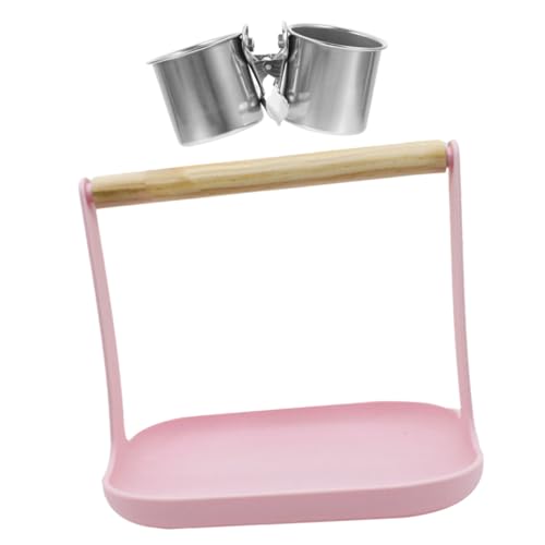 GALPADA Perchoir pour Oiseaux Portable avec Tasse Alimentation Support Entraînement pour Perroquets et Perruches Accessoires Durables Bois Plastique et Acier Inoxydable pour Cage