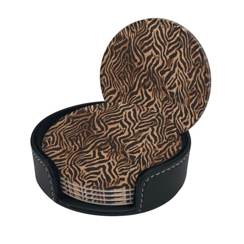 Dessous de Verre en Cuir imprimé léopard pour Boissons, Ensemble de sous-Verres pour Boissons, Tapis de Tasse avec Support pour Boissons Chaudes ou Froides, Lot de 6