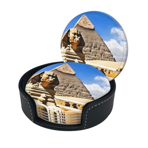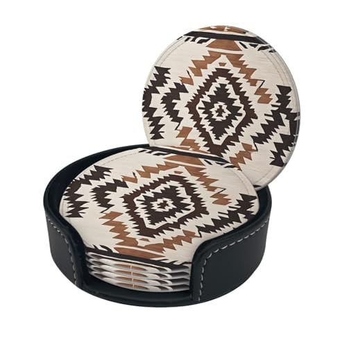 LiLan Lot de 6 Dessous de Tasse en Cuir avec Support (Marron)