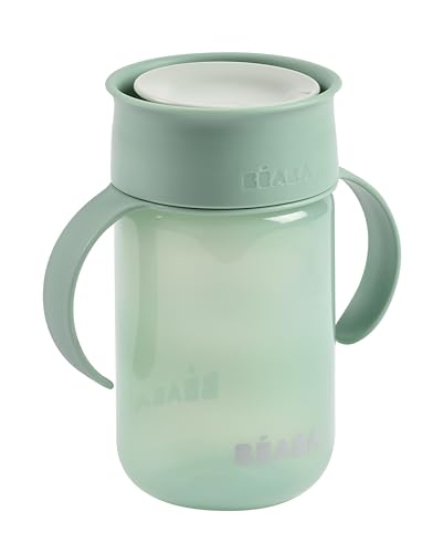 BÉABA, Tasse d'Apprentissage 360° avec Disque Anti-Goutte, Système Breveté Anti-Fuite, à partir de 12 Mois, Anses Amovibles, avec Couvercle hygiénique, Solide et Légère, 340 ml, Vert Sauge