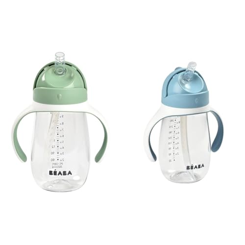 Béaba Biberon/Tasse d'apprentissage 2 en 1, Tasse Paille Enfant, 100 Pour cent étanche, Anti-fuite, Facile à Ouvrir, Poignées amovibles, Tritan et Silicone, 300 ml, Vert Sauge, 1 Unité
