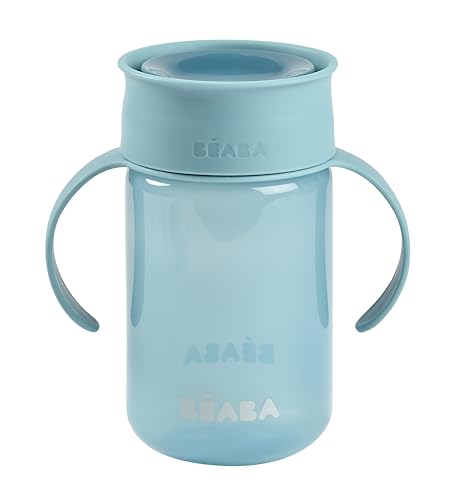 BÉABA, Tasse d'Apprentissage 360° avec Disque Anti-Goutte, Système Breveté Anti-Fuite, à partir de 12 Mois, Anses Amovibles, avec Couvercle hygiénique, Solide et Légère, 340 ml, Bleu