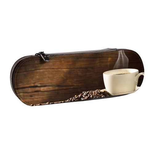 Hgbbdyyjj Tasse à café et grains de café personnalisé grande capacité multifonction en cuir trousse à crayons trousse cosmétique souple et résistante aux taches, Noir , Taille unique, Organiseur de