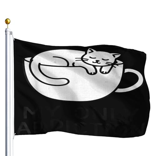 Drapeau Résistants Aux Intempéries Drapeaux Chat Endormi Dans Une Tasse De Café, Ma Seule Addiction Drôle Personnalisé Suspendus Fanion Pour Jardin Fête Bar 90X150Cm
