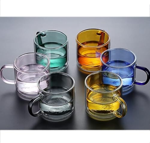 Ensemble De Tasses à Café en Verre à Double Paroi avec Poignée, Tasse à Café Isotherme Réutilisable, Gobelets Colorés, Verres à Vin, Vaisselle en Verre, Verres à B, Six Piece Set