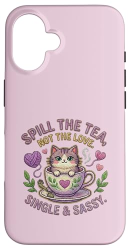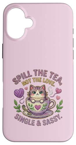 Chat dans Une Tasse de thé renversant Le thé n'aime Pas Un Seul Chaton Mignon Coque pour iPhone 16 Plus