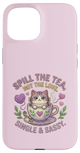 Chat dans Une Tasse de thé renversant Le thé n'aime Pas Un Seul Chaton Mignon Coque pour iPhone 15