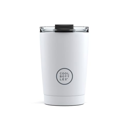 Cool Bottles - Tumbler - Gobelet Isotherme en Inox - 330 ml - Mono White - Tasse à Café Thermique - Couvercle Hermétique - Boissons froides 10h et chaudes 5h - Finition Anti-tâches