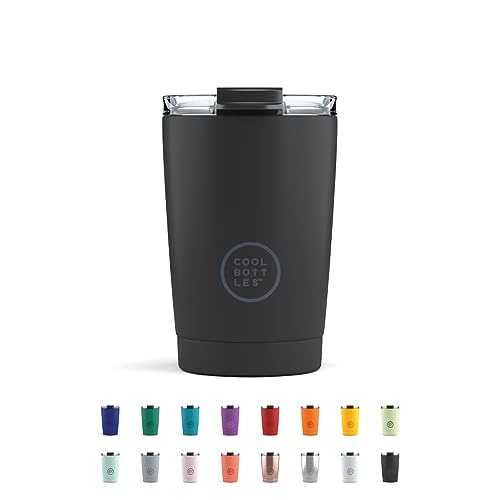 Cool Bottles - Tumbler - Gobelet Isotherme en Inox - 330 ml - Mono Black - Tasse à Café Thermique - Couvercle Hermétique - Boissons froides 10h et chaudes 5h - Finition Anti-tâches