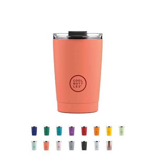 Cool Bottles - Tumbler - Gobelet Isotherme en Inox - 330 ml - Pastel Coral - Tasse à Café Thermique - Couvercle Hermétique - Boissons froides 10h et chaudes 5h - Finition Anti-tâches