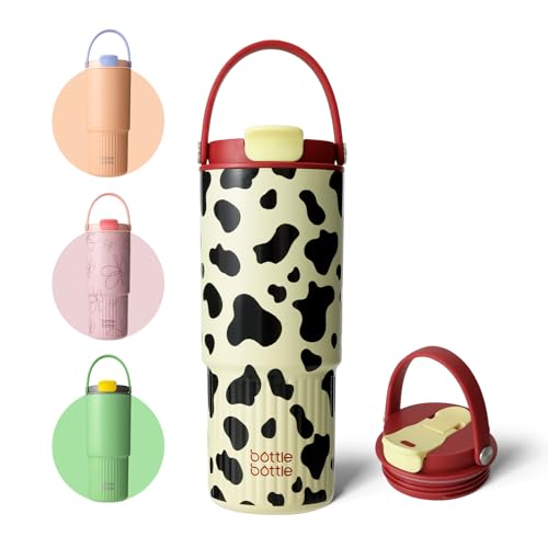 BOTTLE BOTTLE Tasse isotherme avec paille et poignée pour école, voiture, sport, maison, bureau, Mug voyage 750 ml (vache)