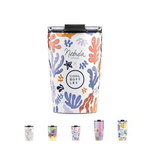 Cool Bottles - Mug isotherme en acier inoxydable 330 ml - Tasse à café, sans BPA - Étanche avec couvercle hermétique- Boissons froides 10 h et chaudes 5 h - Plaisirs aquatiques