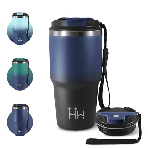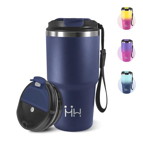 HoneyHolly Mug Isotherme 600 ML, Réutilisable, Tasse Isotherme pour Café, Acier Inoxydable 304, Emporter, Anti-fuite, Double Paroi, Étanche Gobelet de Voyage pour Café Chaud et Froid, Lait et Thé