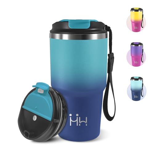 Mug Isotherme, 20oz Thermos Isotherme, Sans BPA, 8h Froid & 6 Chaud, Gourde Avec Poignée, Acier Inoxydable 18/8, Tasse Thermos Café, Anti Fuite, Bouteille pour Voyages, Camping, Bureau, Yoga