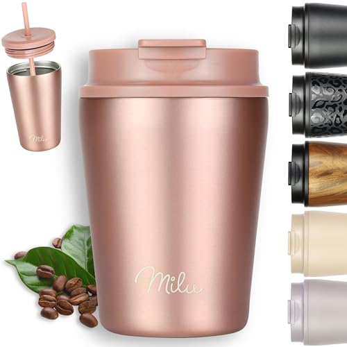 Milu Mug Isotherme 300ml - Thermo Café étanche en acier inoxydable, Tasse thermique sans BPA, 100% anti-fuite(Rose Gold, 300ml)