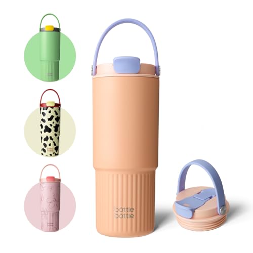 BOTTLE BOTTLE Tasse isotherme avec paille et poignée pour école, voiture, sport, maison, bureau, Mug voyage 760 ml (pêche)