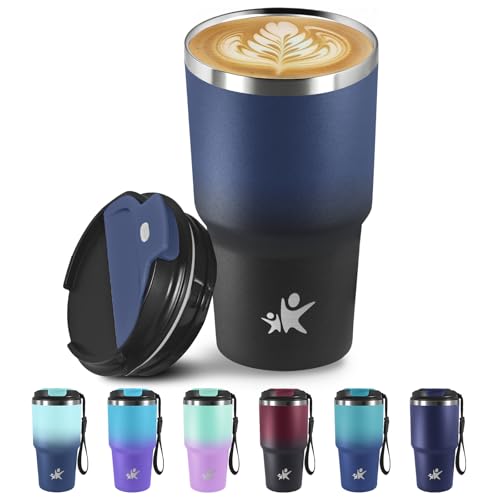 Mug Isotherme Cafe, 600 ml, Tasse à Café Isotherme avec Couvercle, 304 Acier Inoxydable, Réutilisable Tasse de Voiture avec Couvercle, Idéal pour le Café à Emporter et Le Bureau - Bleu foncé