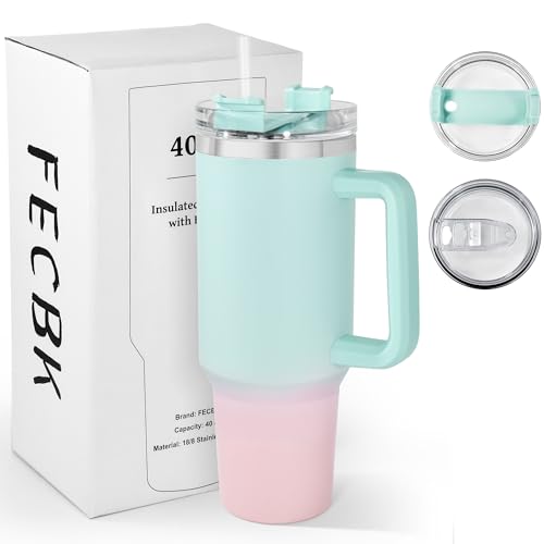 FECBK Mug Isotherme avec Paille et Poignée 1.2L, Tasse Isotherme 100% Anti-fuite, 34 Heures Froid, 12 Heures Chaud, Gobelet en Acier Inoxydable, Lavable au Lave-Vaisselle, Bubble Gum