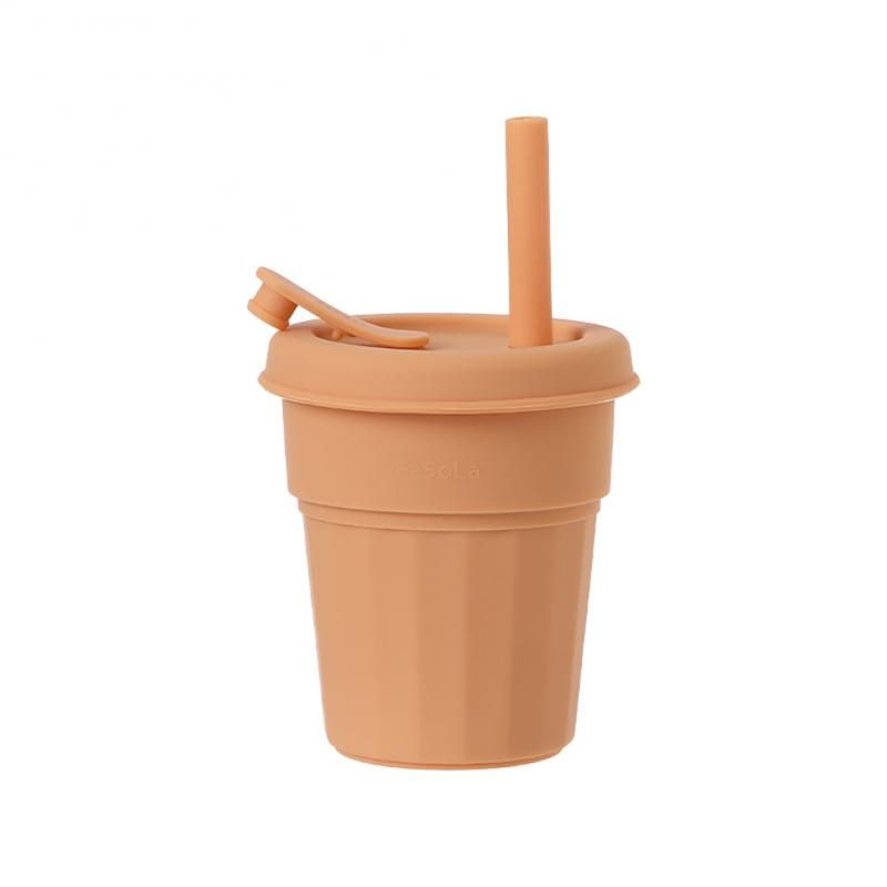 Tasse Anti-goutte et paille pour bébé en silicone ocre