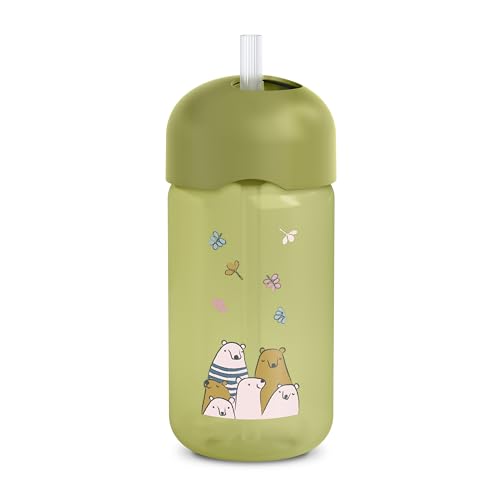 Suavinex, Tasse Apprentissage Bébé, Gourde Paille Enfant, Gobelet Bébé avec Paille en Silicone Flexible, Résiste à la Morsure, Anti-goutte, Apte Lave-vaisselle, +18 Mois, 340 ml, Bears Vert