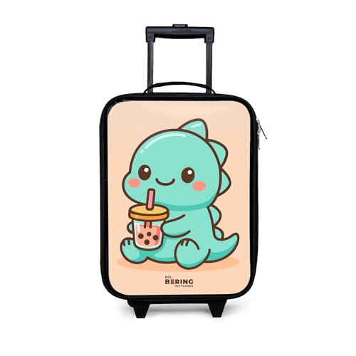 NoBoringSuitcases.com® Valise Enfant 48x31x19 cm Ultra Légère Bagages À roulettes LED pour Enfants Petite Voyage Bagage Bebe Valisette A Roulette Ado - Garçon - Dinosaure - Bleu - Tasse
