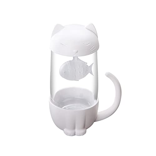 Tasse en Verre Mignonne avec Infuseur à Poisson, Tasse à Infuseur à Thé Unique et Charmante pour les Amoureux des Chats, Tasse à Infuseur à Thé Créative Facile à Utiliser, Filtre(Chat blanc)