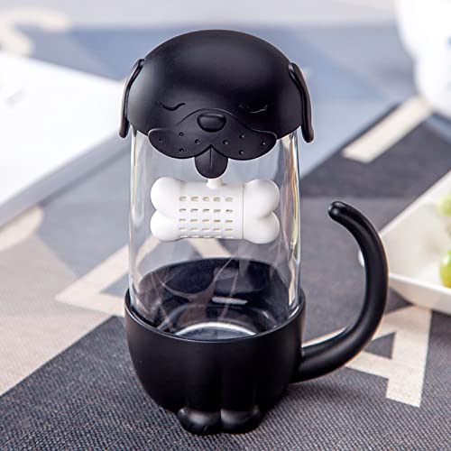 Tasse en Verre Mignonne avec Infuseur à Poisson, Tasse à Infuseur à Thé Unique et Charmante pour les Amoureux des Chats, Tasse à Infuseur à Thé Créative Facile à Utiliser, Filtre(Chien noir)