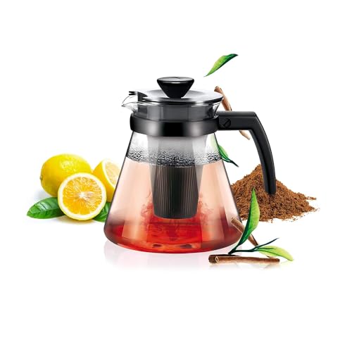 Avilia Théière avec filtre en verre borosilicate – Infusion résistante à la chaleur pour thé, tisanes et café, deux filtres diversifiés, lavable au lave-vaisselle, 1,7 l