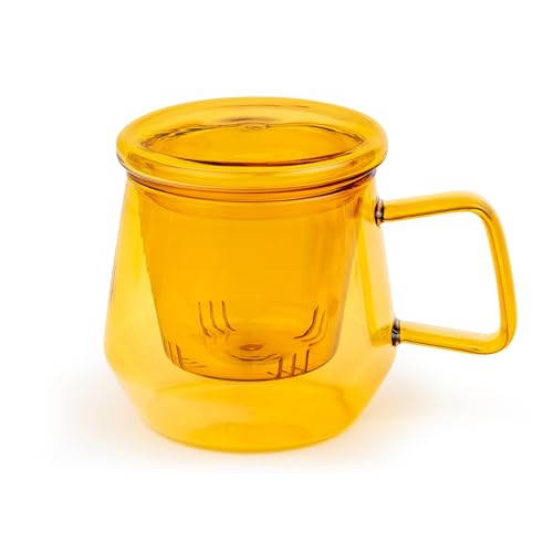 Bredemeijer Tea for One Verre à thé en verre avec filtre à thé en verre et couvercle en verre - 350 ml - Jaune transparent - Tasse à thé pour 1 tasse de thé en vrac