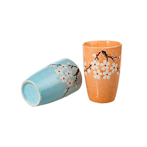 lachineuse - 2 Verres en Céramique Fleurs de Cerisiers - Coloris Bleu et Orange Pastel - Vaisselle Japonaise - Tasse Mug pour Thé, Café, Boissons Fraiches - Idée Cadeau Asie Chine Japon