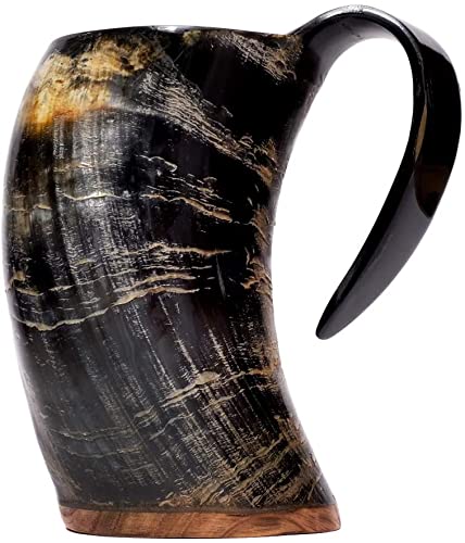Raxove Tasse à Boire en Corne, Tasse à Boire en Corne de Viking, Tasse à bière en Corne, Tasse Vintage, Tasse à Eau en Corne Rustique, Tasse à Whisky avec poignée pour l'eau, Tasse à bière, chope