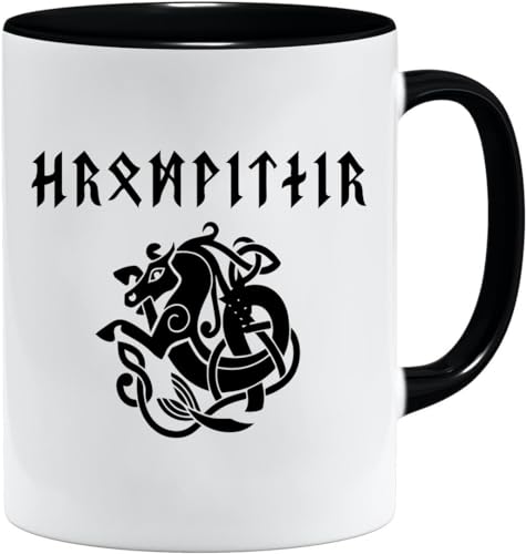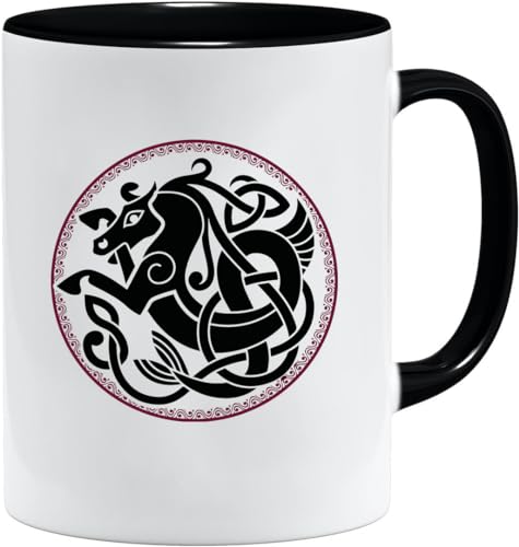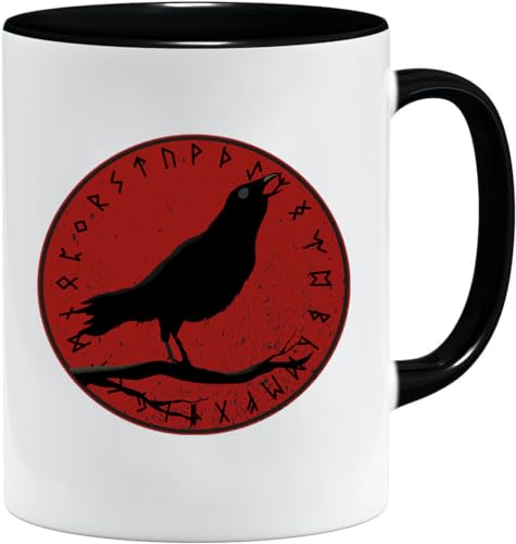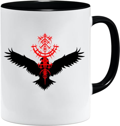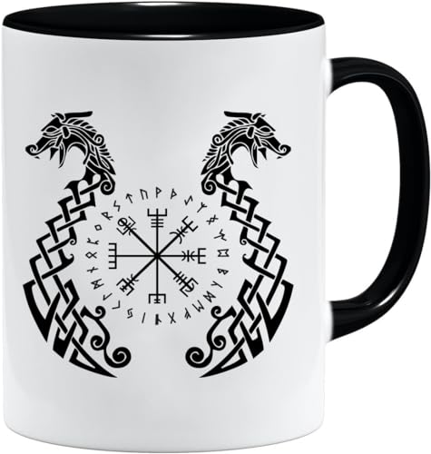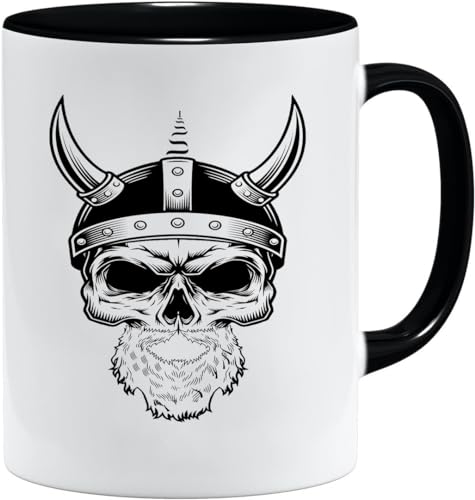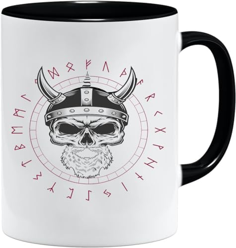 Jungle Mug Tasse viking nordique | Idée cadeau pour les hommes âgés, papa, grand-père, tasse à café, motif viking, tête de mort, chope à bière thors hammer (VIKING032)