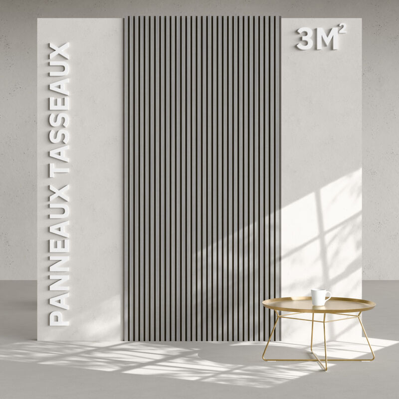 Mon Marché Déco - Lot de 2 Panneaux Tasseaux Bois - Chêne Feutre Noir - 3 m², 2500 x 600 mm