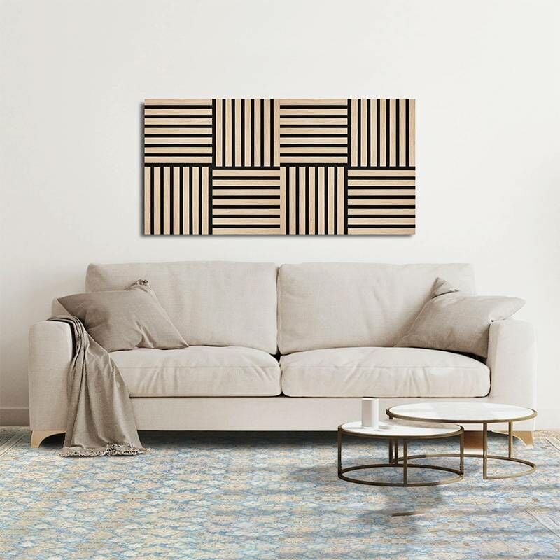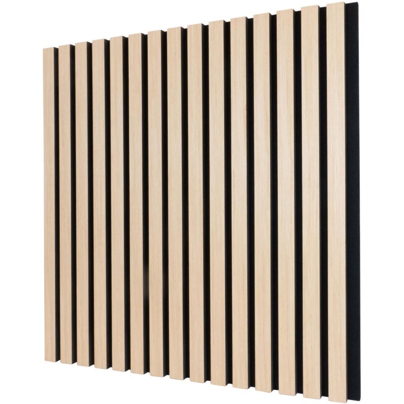 Decoon - Panneau mural tasseaux 60 x 60 x 1,9 cm - Lattes chêne clair véritable fond noir 0,36m²
