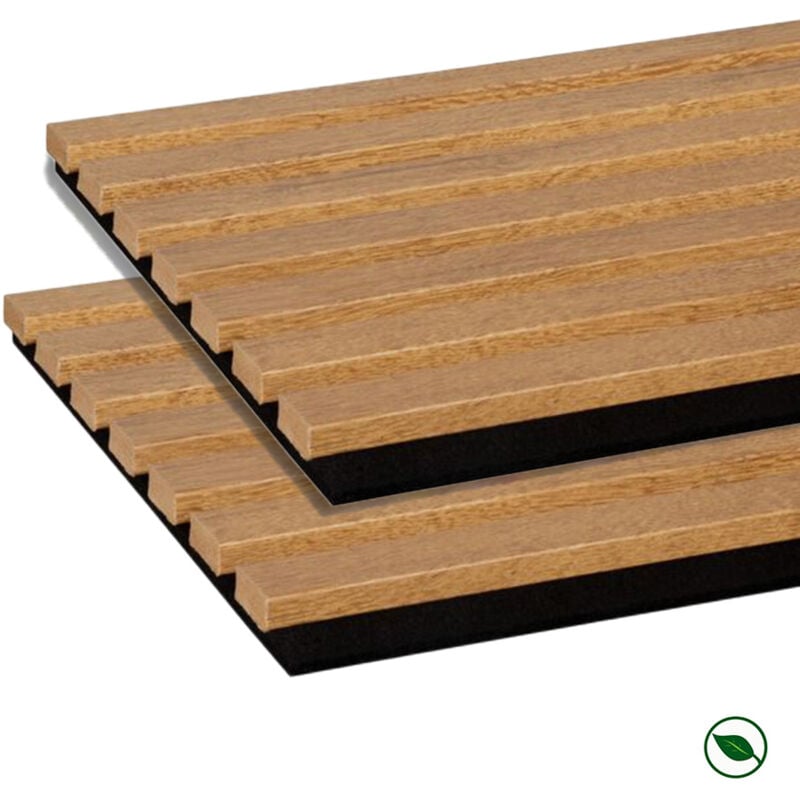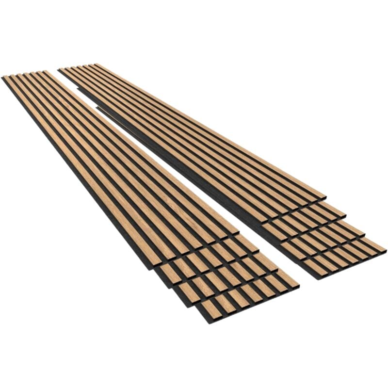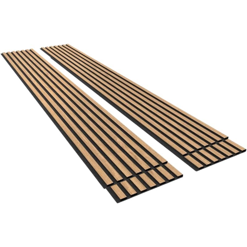 Forestea - Lot de 2 Panneaux tasseaux bois mdf acoustic décor chêne clair sur fond feutrine noir 2600 x 300 x 17 mm -1,56 M2 pefc 70%
