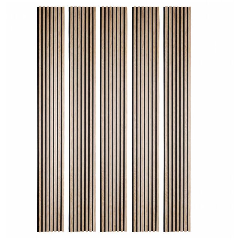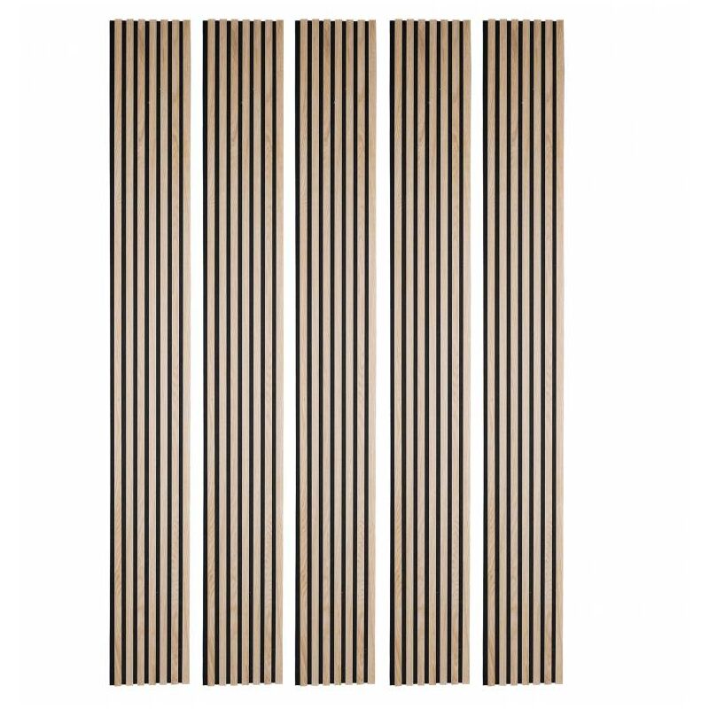 Decoon - Pack Acoustic Mur tv tasseaux bois - Lot de 5 panneaux 250x30x1,9 cm - Lamelles chêne clair véritable fond noir - 3,75m²