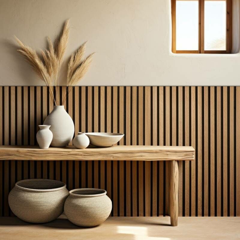 Decoon - Panneau mural acoustique tasseaux bois 250 x 30 x 1,9 cm - Lamelles chêne clair véritable sur fond noir - 0,75m²