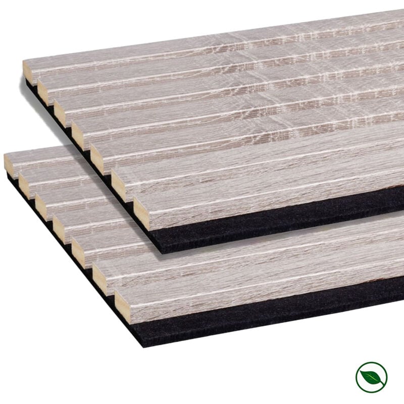 Forestea - Lot de 2 Panneaux tasseaux bois mdf acoustic décor chêne lave sur feutrine 2600x300x17mm pefc 70%