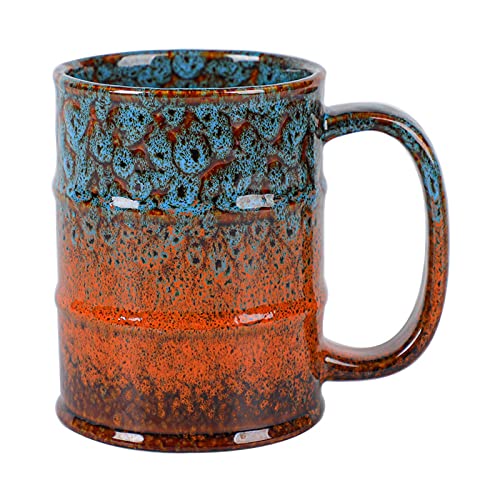 YlobdolY Grande Tasse à Café 600ml en Céramique avec Anse, Tasse à Thé Vintage en Forme de Baril, Tasses à Espresso pour Le Bureau et la Maison, Cadeau Unique pour Hommes Femmes, Bleu Orange