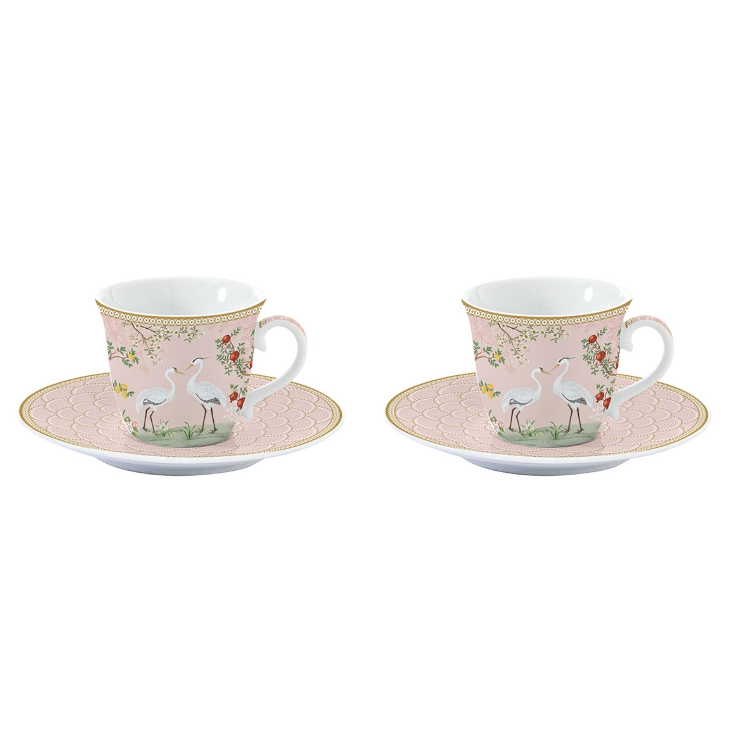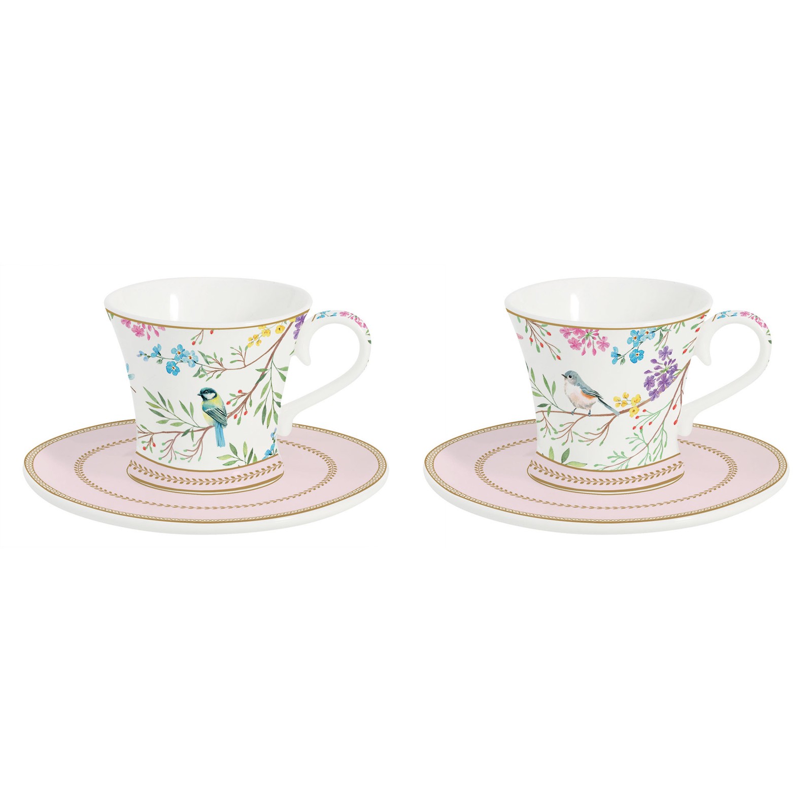 Easy Life Birds Melody Set 2 Tasses Café Espresso 80ml avec Soucoupe Porcelaine