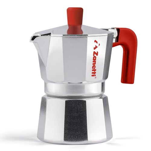 Zanetti, Mama Red Edition Cafetière Moka en aluminium, machine à café 2 tasses, Moka Espresso avec système anti-goutte, joint en silicone, poignée ergonomique, couleur rouge