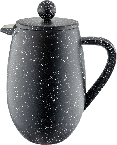 Café Olé BFD Granite Cafetière, corps à double paroi en acier inoxydable 18/10 et filtre à mailles, finition effet granit noir, 1000 ml (8 tasses à espresso ou 4 tasses)