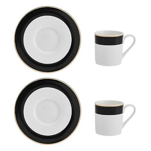 Mikasa Miksa Luxe Deco Set de tasses à espresso et soucoupes en Chine, 2x tasses à espresso et soucoupes avec motif à rayures, tasses à café de 100ml - Emballage cadeau et lavable au lave-vaisselle